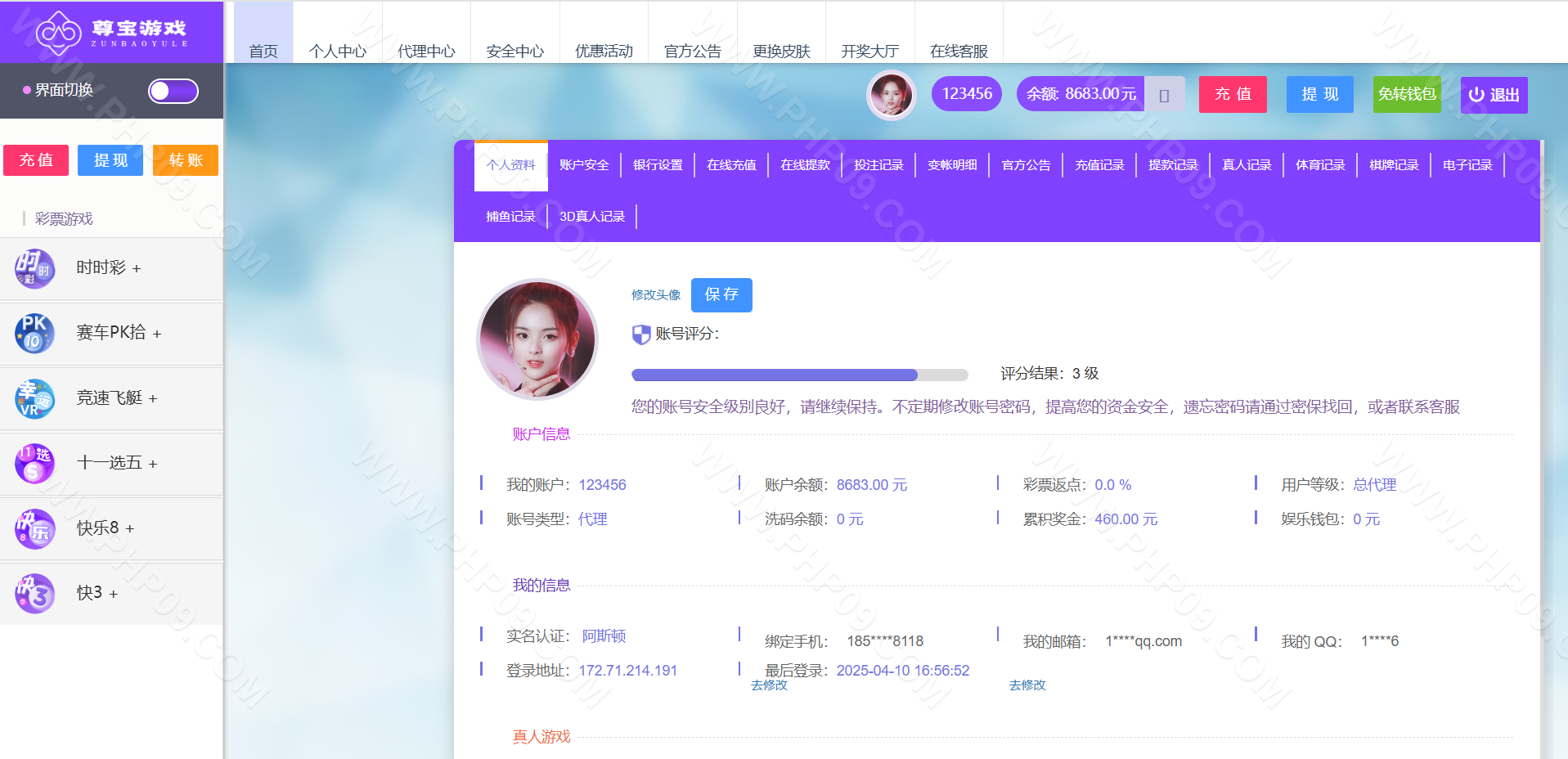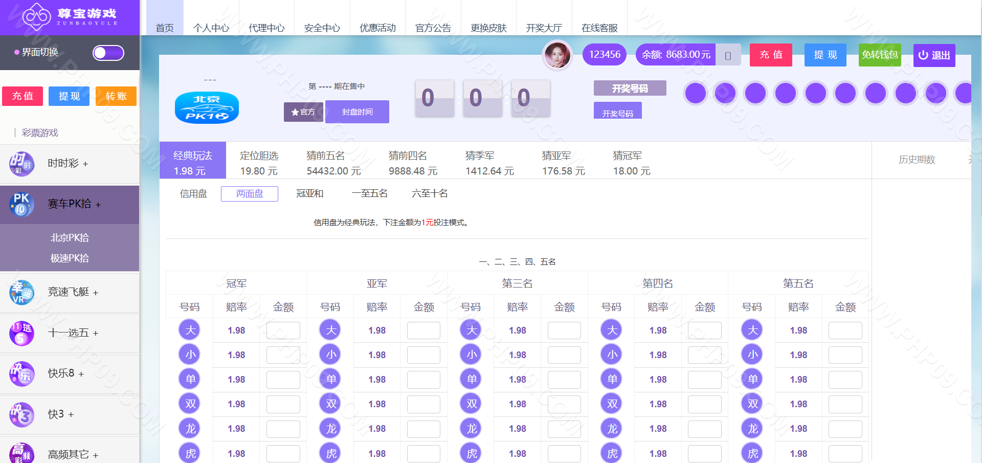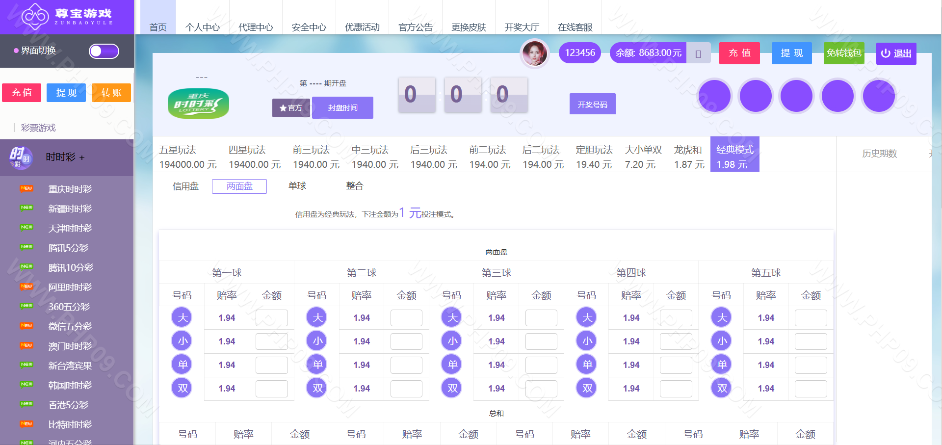 大富彩票尊宝娱乐整站,带真人娱乐/带手机版自适应 信用盘/双面盘玩法,后台支持自动风控/添加彩种/玩法/预设开奖/控制/改单 TP框架 PHP语言 全开源可二次开发时时彩源码 本站所有源码都是站长亲测过才上架的,开通会员可以免费下载!