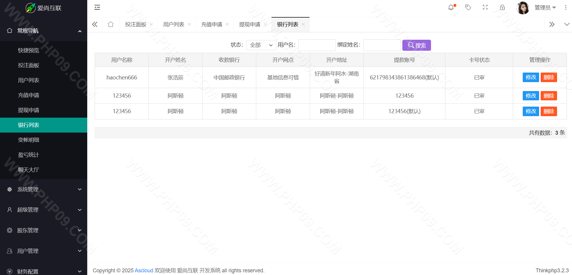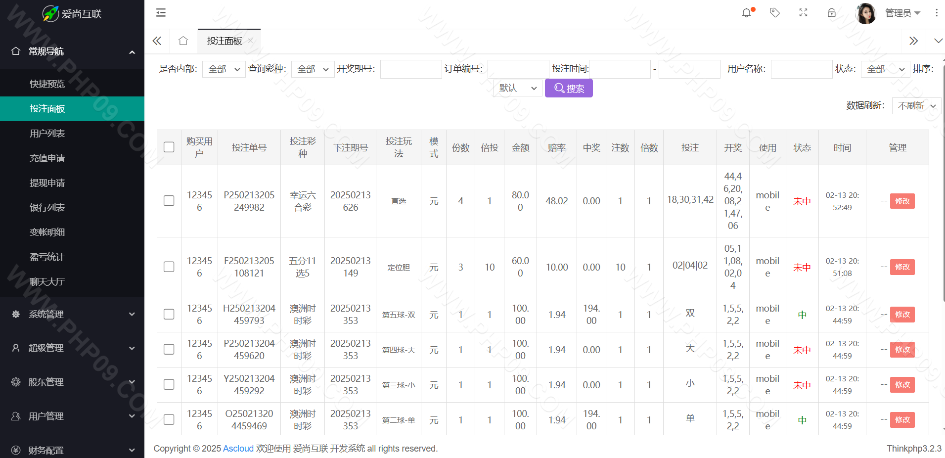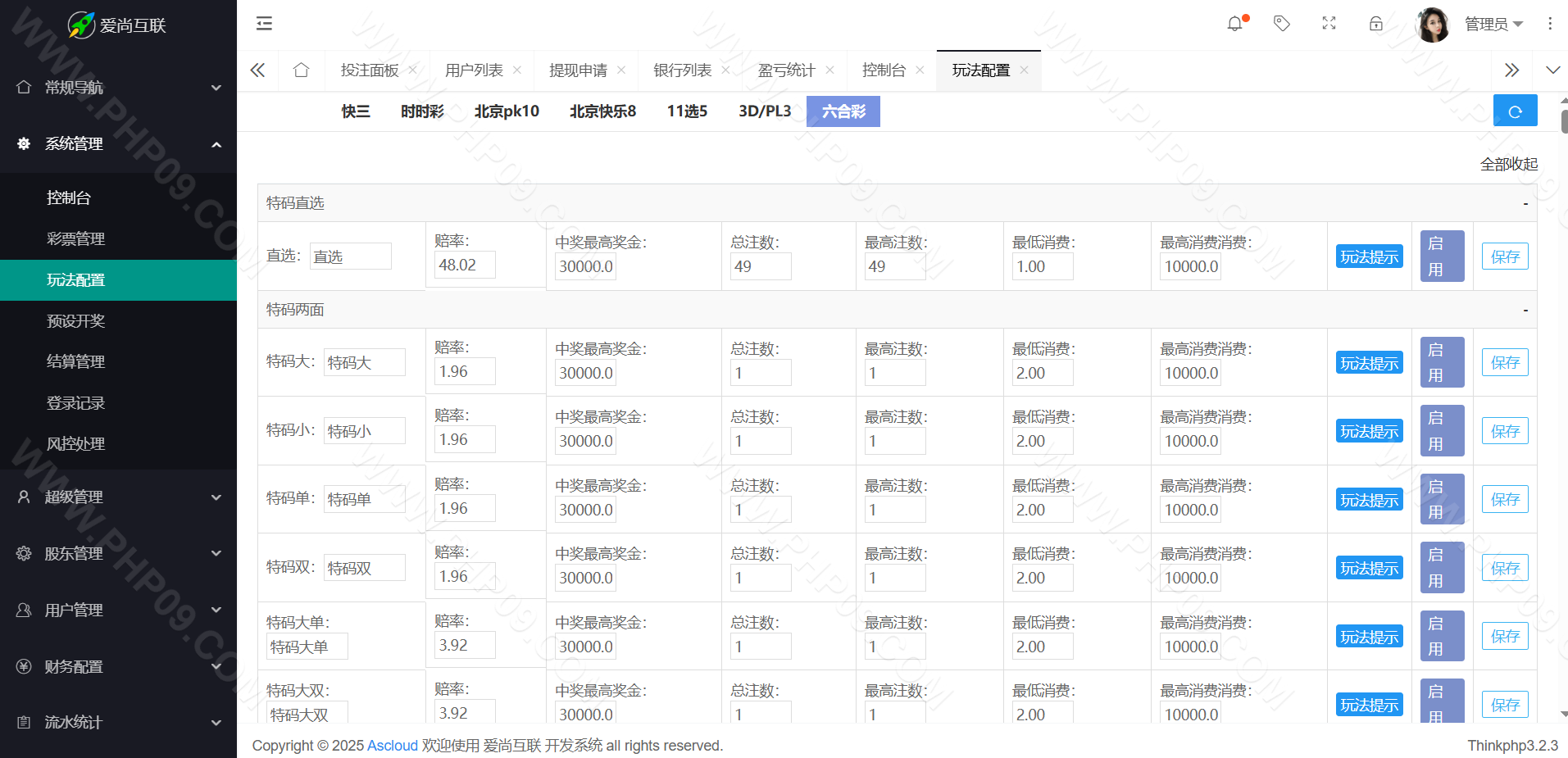 大富彩票尊宝娱乐整站,带真人娱乐/带手机版自适应 信用盘/双面盘玩法,后台支持自动风控/添加彩种/玩法/预设开奖/控制/改单 TP框架 PHP语言 全开源可二次开发时时彩源码 本站所有源码都是站长亲测过才上架的,开通会员可以免费下载!