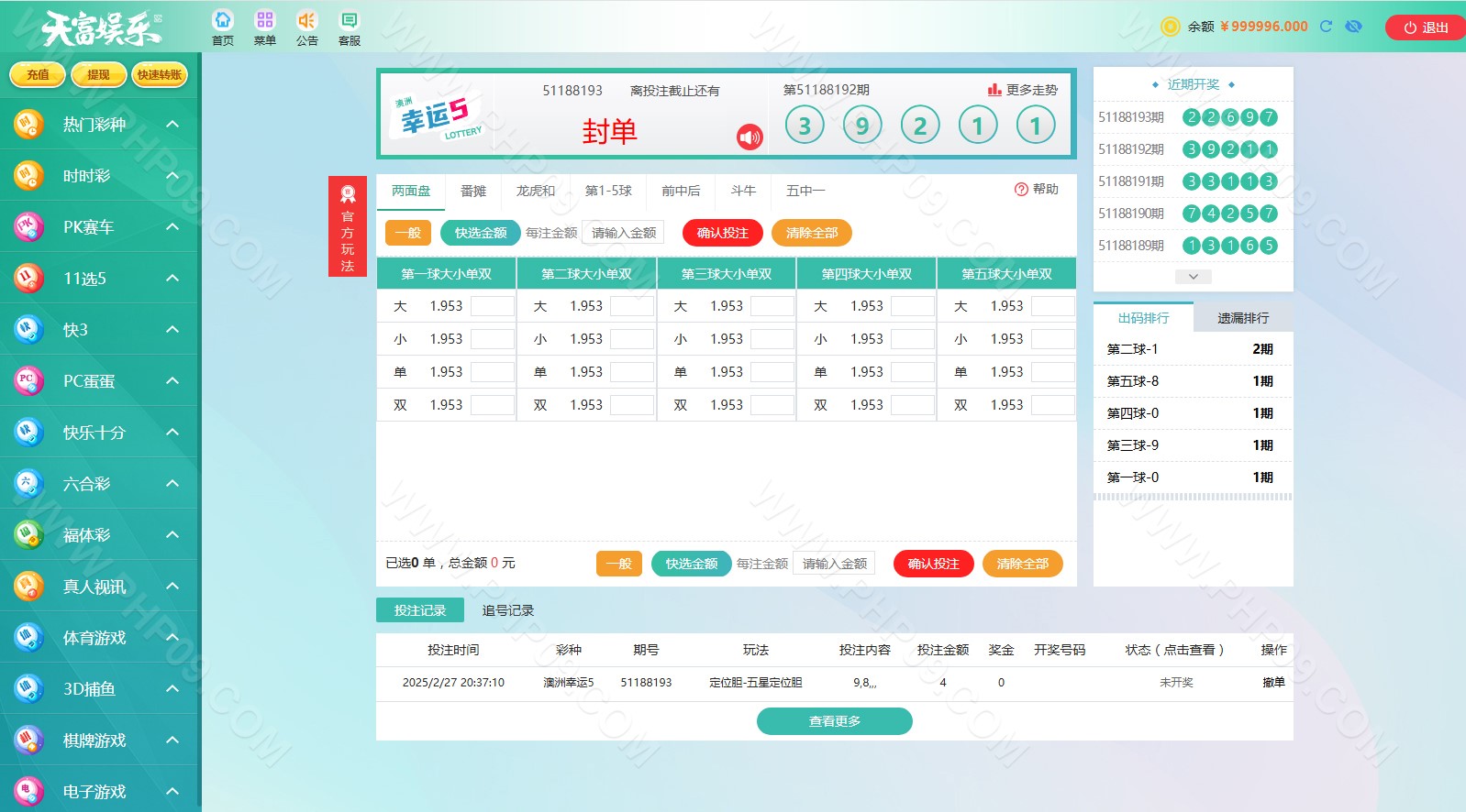 九州国际高端时时彩系统,NET语言彩票平台源码,可预设开奖可控杀,运营级彩票系统