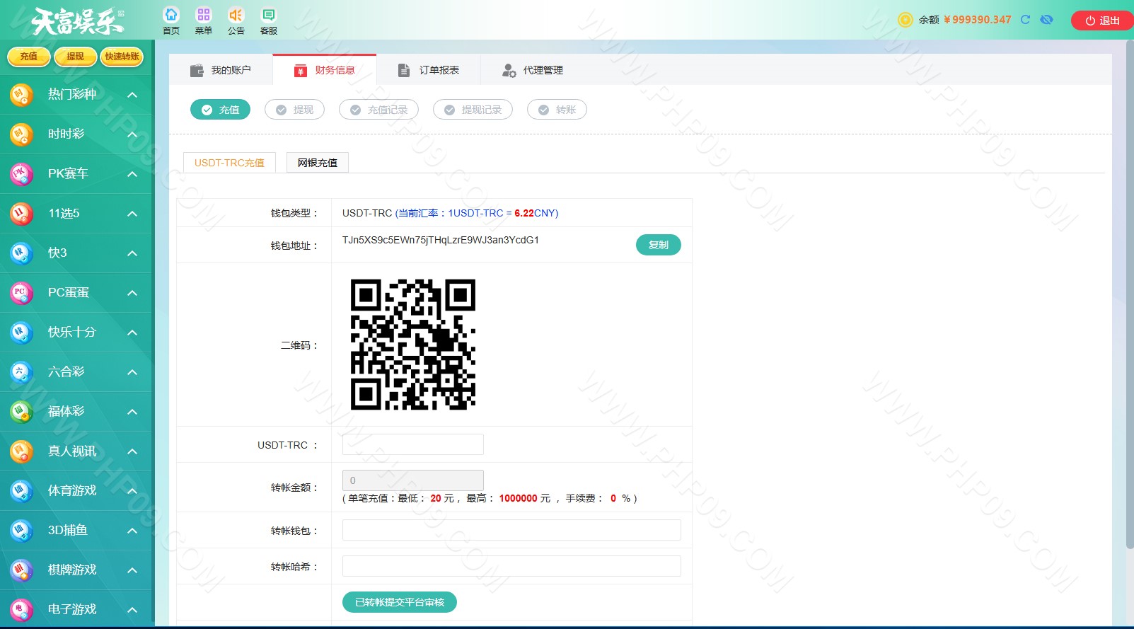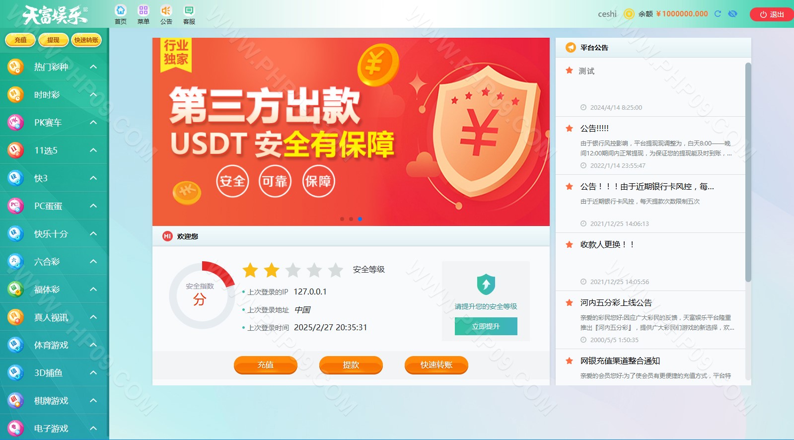 此系统非市面上流通的普通彩票系统,已增加有USDT虚拟币充值通道。
