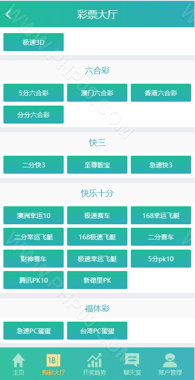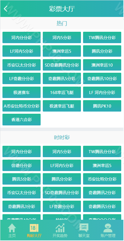 各个地方的系统彩、官方彩、六合彩虚拟币、彩腾讯彩等等均有,几十个彩种,
