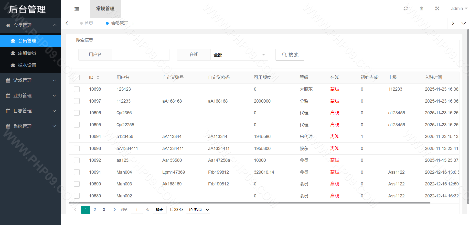 总管理员-公司-股东-大股东-总代理-代理-会员